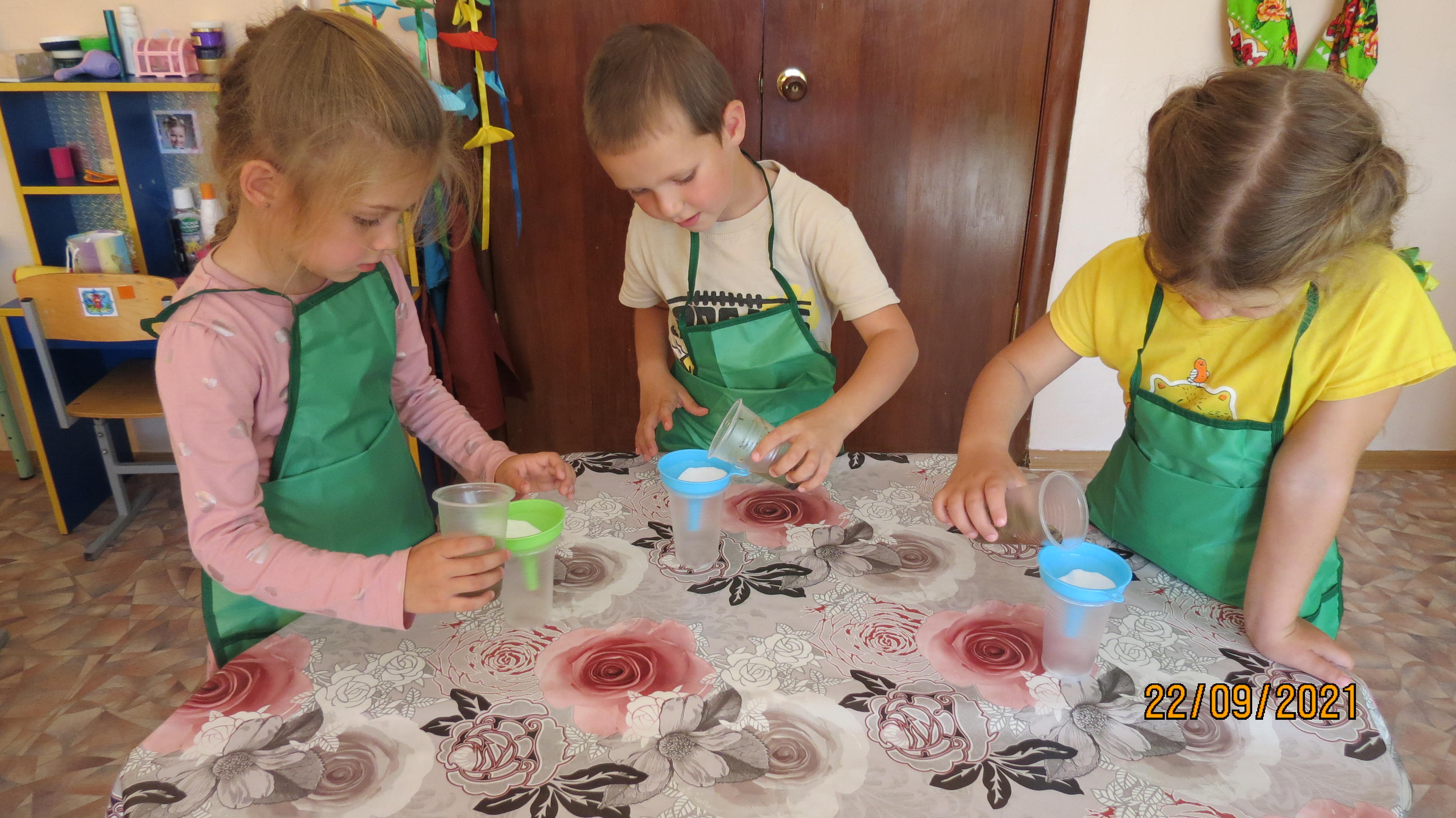 Дети средней группы проводят опыты по очистке воды