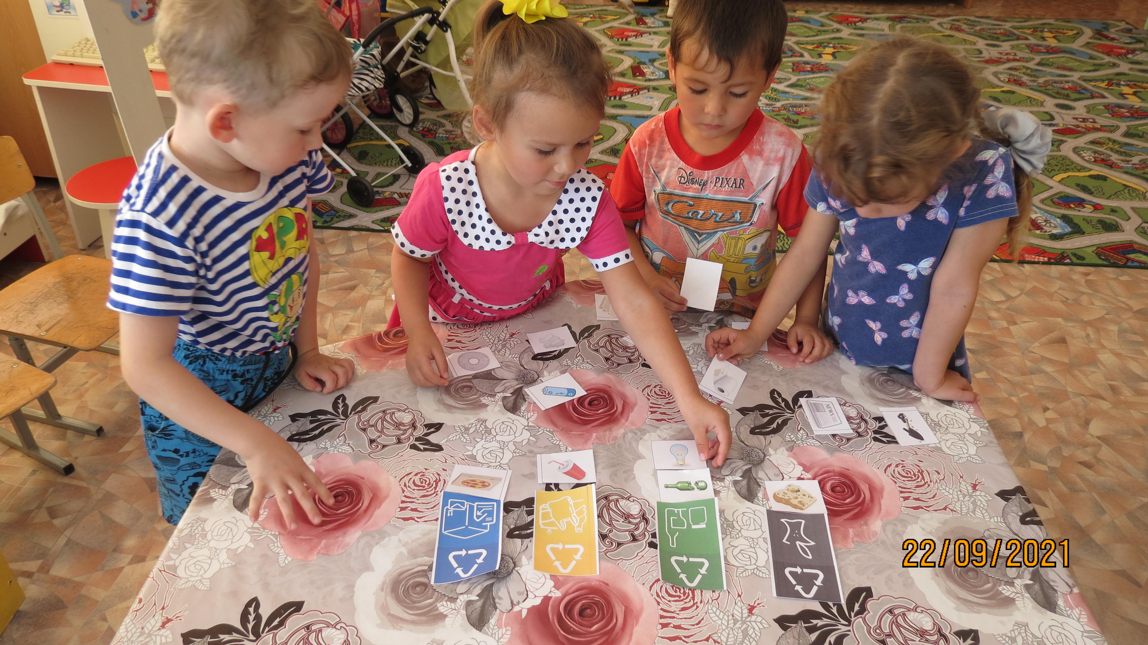 Дети средней группы учатся сортировать мусор